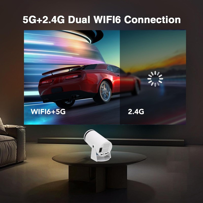 4K UHD Smart Small Projector, 1080P Portable Home Video Projector with 5G WiFi6 BT 5.3, Auto Correction, 260 Inch Screen Size, 11 (UK Plug)