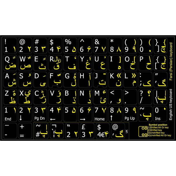 4Keyboard FARSI (Persian) English Non-Transparent Keyboard Labels Black Background