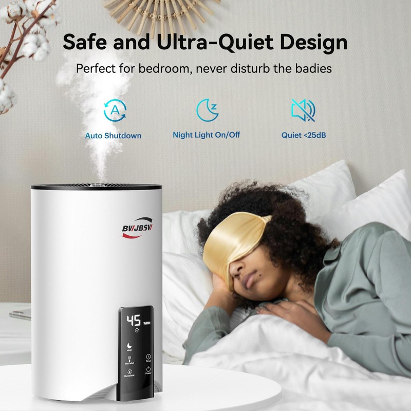 - User-Friendly Design: With a 4L top-fill tank, it’s easy to use and clean. Suitable for rooms up to 400 sq ft, it runs for up to 30 hours with three mist levels, touch and remote control, sleep mode, auto shut-off, and an 8-hour timer. Noise level is ≤35dB.