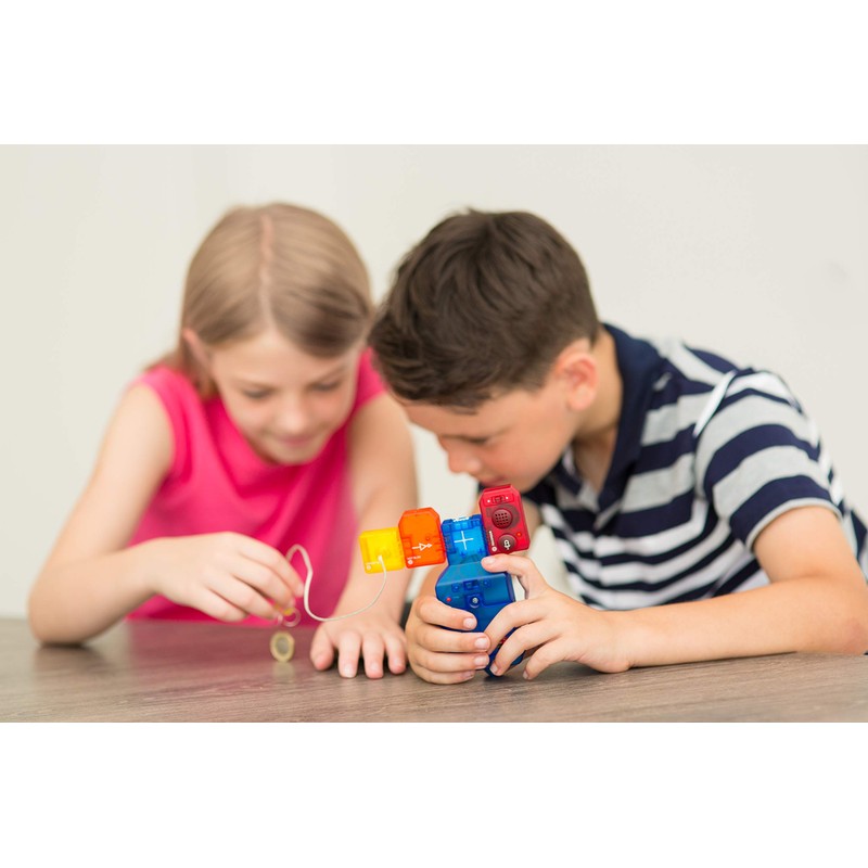 • By plugging together logiblocs in different combinations you can create circuits and virtually write your own simple program to build each new invention