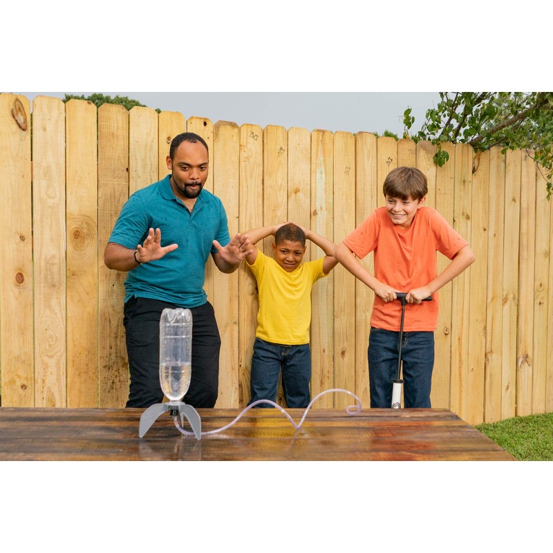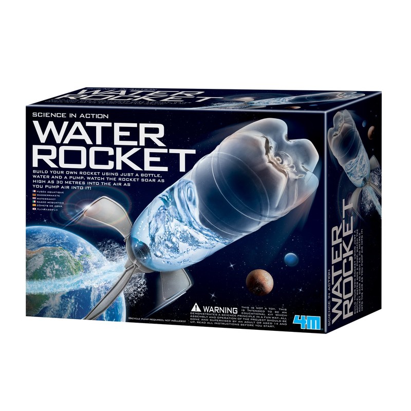 Product DescriptionBlast off into the heavens with the 4M Water Rocket Kit. The 4M Water Rocket Kit uses the power of water pressure to blast its rocket up to 90 feet in the air. The kit contains all the parts required to transform a recycled soda bottle into a functioning water rocket. This kit is ideal for young science enthusiasts, especially those interested in rocketry and space flight. Detailed instructions for use and care are included. Adult supervision recommended. This kit requires the use of a bicycle pump (not included).From the ManufacturerConstruct a rocket that blasts over 30 feet with our 4M Water Rocket Kit. Powered by water and air pressure. Pump and instructions are included. Science in action.