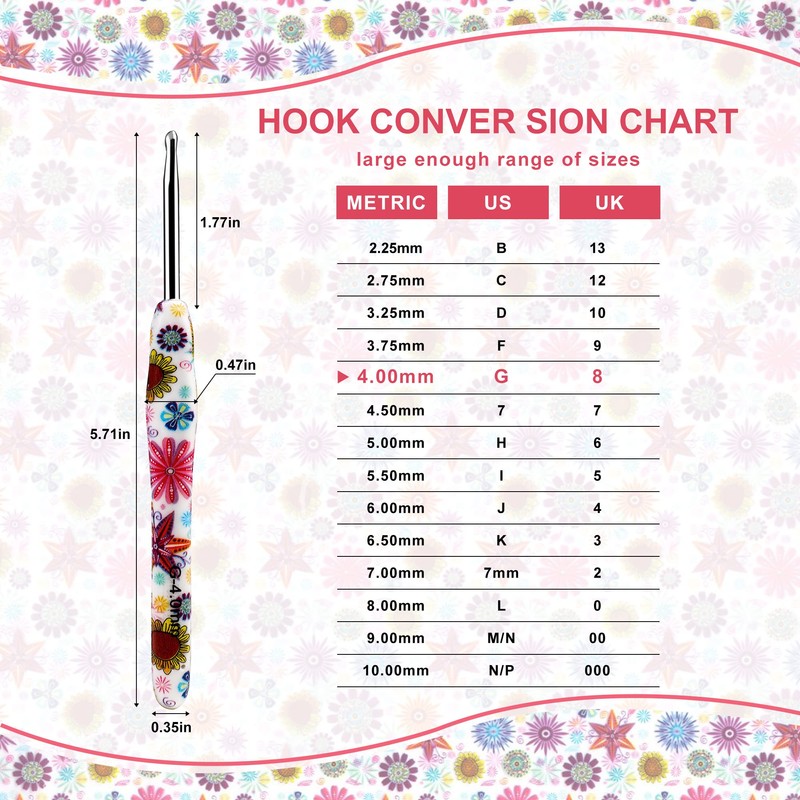 - 【Multiple Sizes】We offer 14 size crochet hooks for your choose-2.25mm/2.75mm/3.25mm/3.75mm/4.0mm/4.5mm/5.0mm/5.5mm/6.0mm/6.5mm/7.0mm/8.0mm/9.0mm/10.0mm