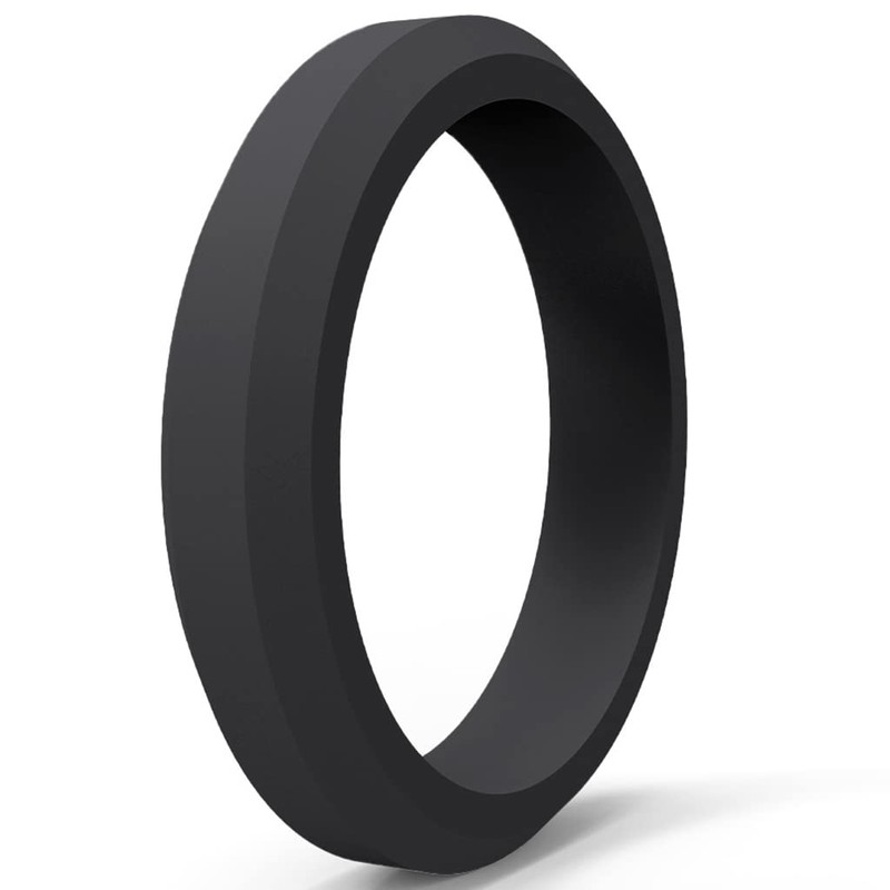 4mm Matte Black Brushed Silicone Ciassical Simple Plain Stackable Wedding Ban...