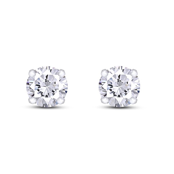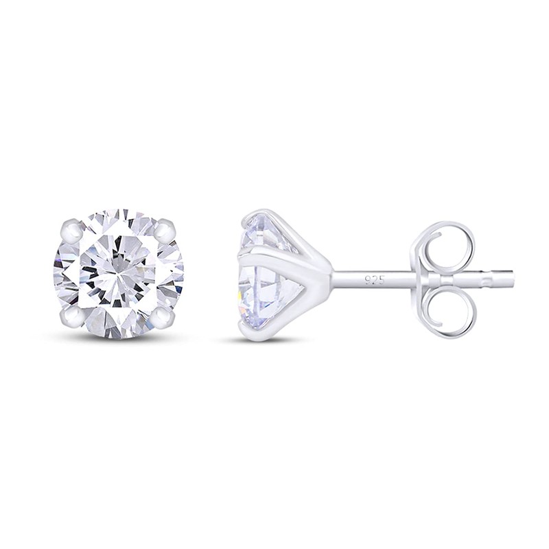 4mm Round Cut Cubic Zirconia Stud Earrings in 14k White Gold Over Sterling Silver