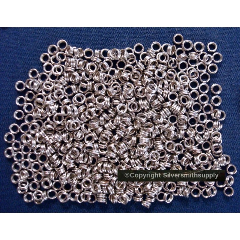 GREAT DESIGN ELEMENTS. 500 piece lot of 4mm outside diameter 20 gauge white gold plated split ring, (key rings).