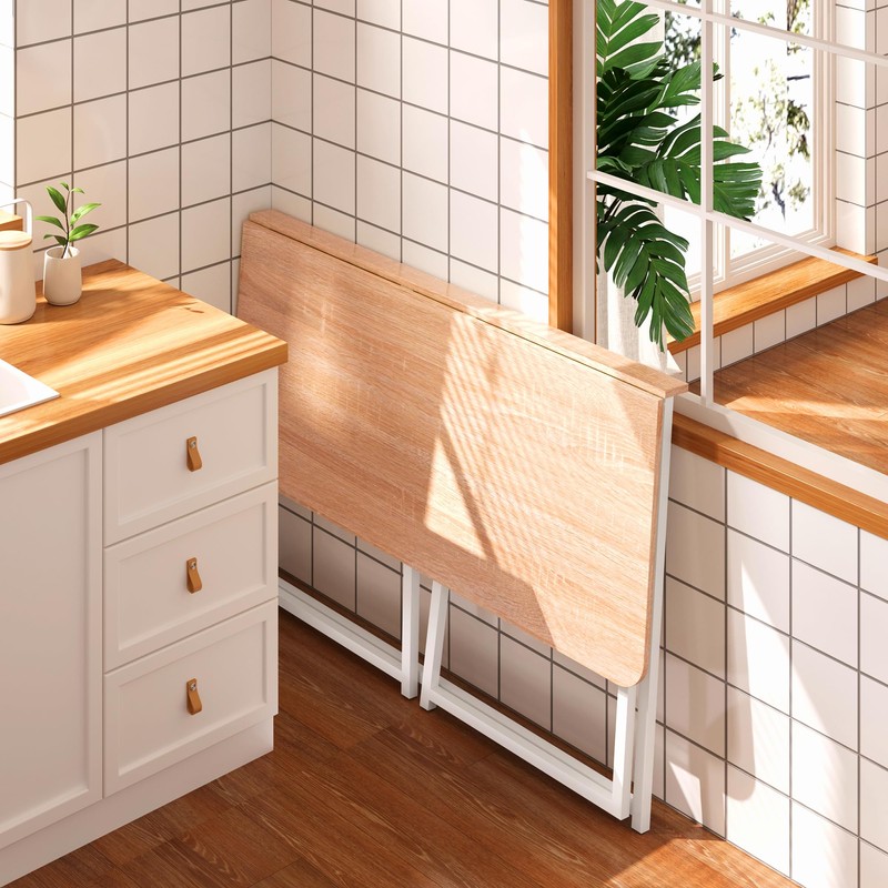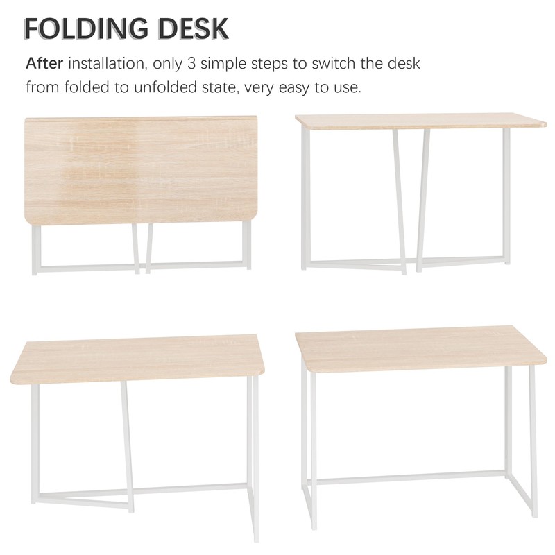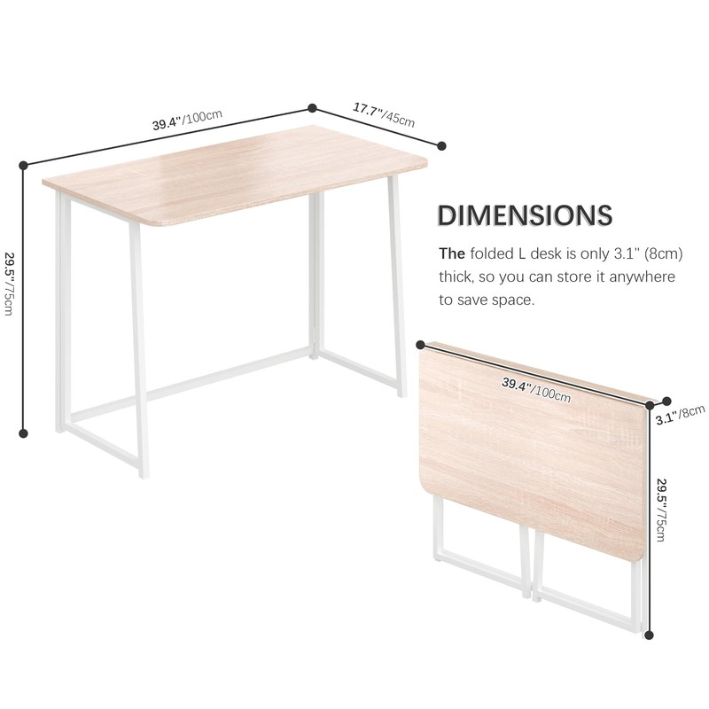 4NM 39.4" Small Folding Desk, Simple Assembly Computer Desk Home Office Desk Study Writing Table for Small Space Offices - Natural and White