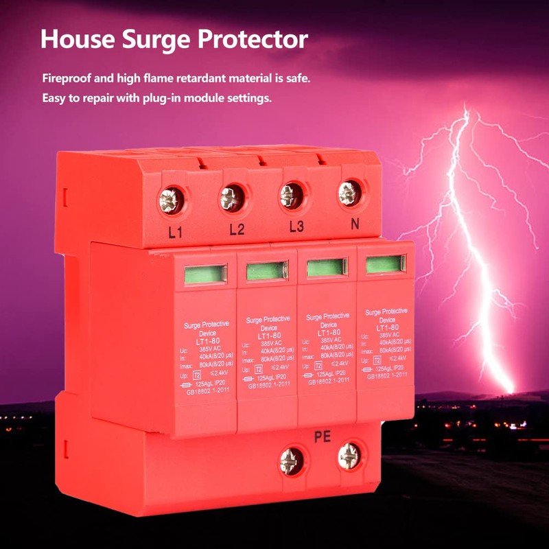 4P Haus-Überspannungsschutz Niederspannungs-Ableiter 40KA Überspannungsableiter hutschiene für Donnerschutz,Dreiphasen-Vierdraht (4P40KA)