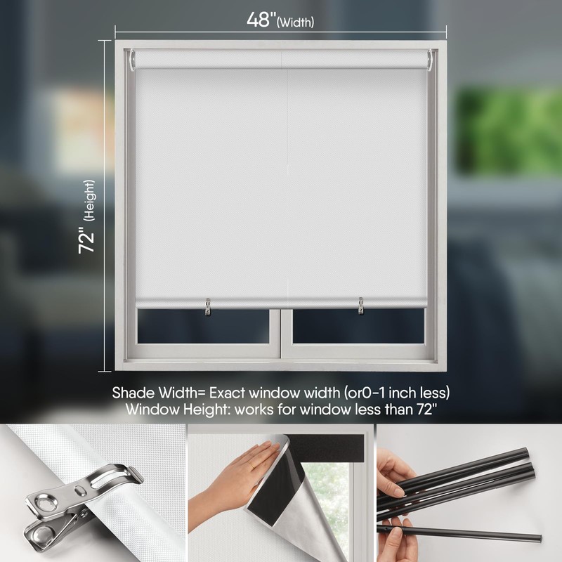 4Pack Blackout Roller Window Shades, Cordless Roller Shades, No Tools No Drill Pull Down Room Darkening Window Shades, Blackout Blinds for Bedroom Windows Home and Office(48''W x 72''H, White)