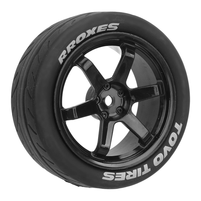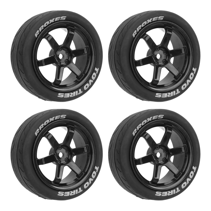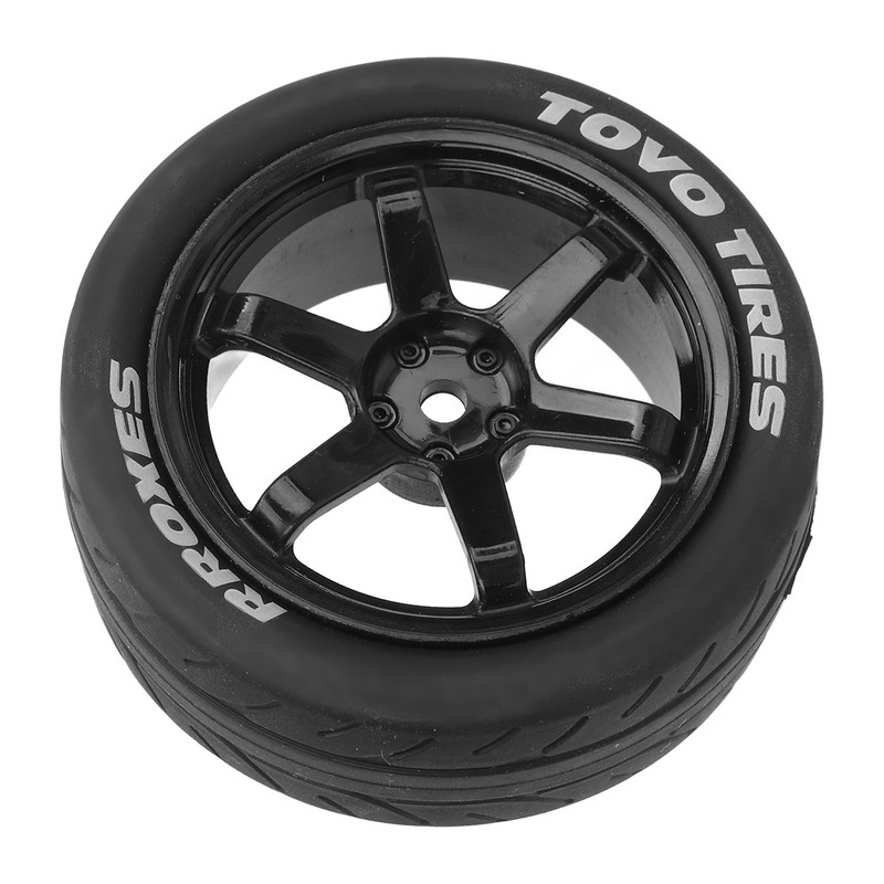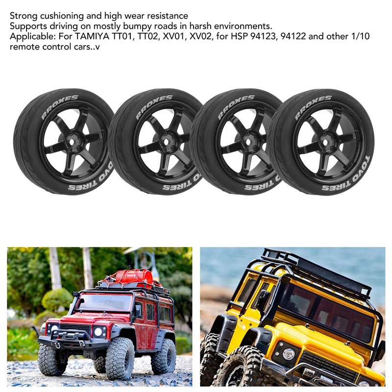 4Pcs 1/10 RC Tires Plastic Rubber Smoothly Surface Strong Cushioning RC Wheels Replacement for TAMIYA TT01 TT02 Black