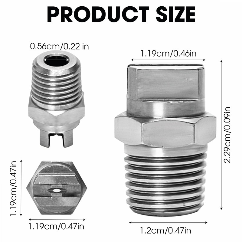 1. The high pressure washer spray tips are constructed of 304 stainless steel, which is sturdy and rust-proof.