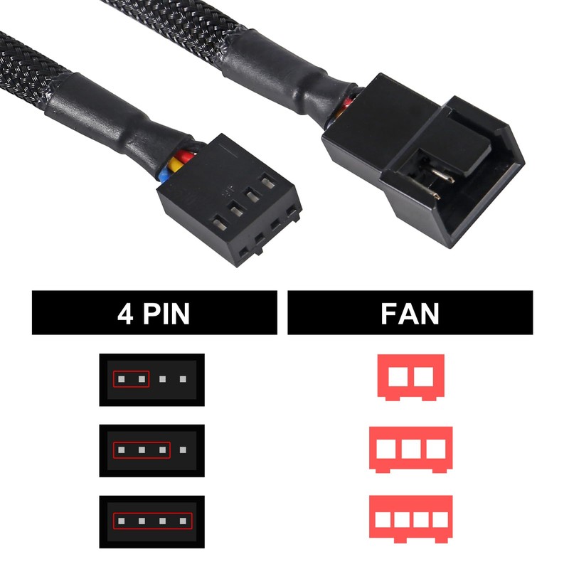 - The fan extension cable is one 4-pin female connector to 4-pin male connector, suits for CPU or PC case fan.