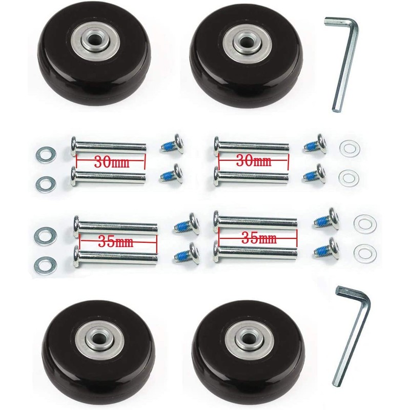 - Box contents: 4 x suitcase wheels, replacement wheels, rubber wheels, replacement wheels for luggage, suitcase, size: 43 x 18 mm with 8 pairs of axles, axle length: 36 and 30 mm, each 4 pieces