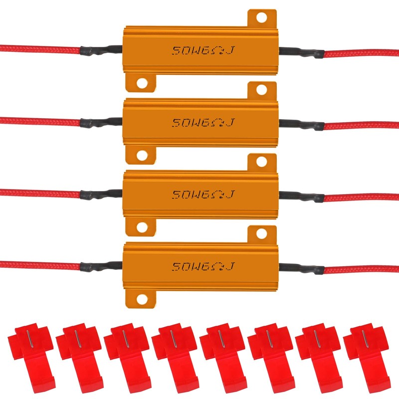 • 50W 6ohm Load Resistors - Fix Blink Error Code Black-4 PCS+ 8Pcs x T-Taps. ( 4 Pieces of 6 Ohm 50W LED Load Resistors – Fix The Flickering LED Turn Signal Light or LED License Plate Lights )