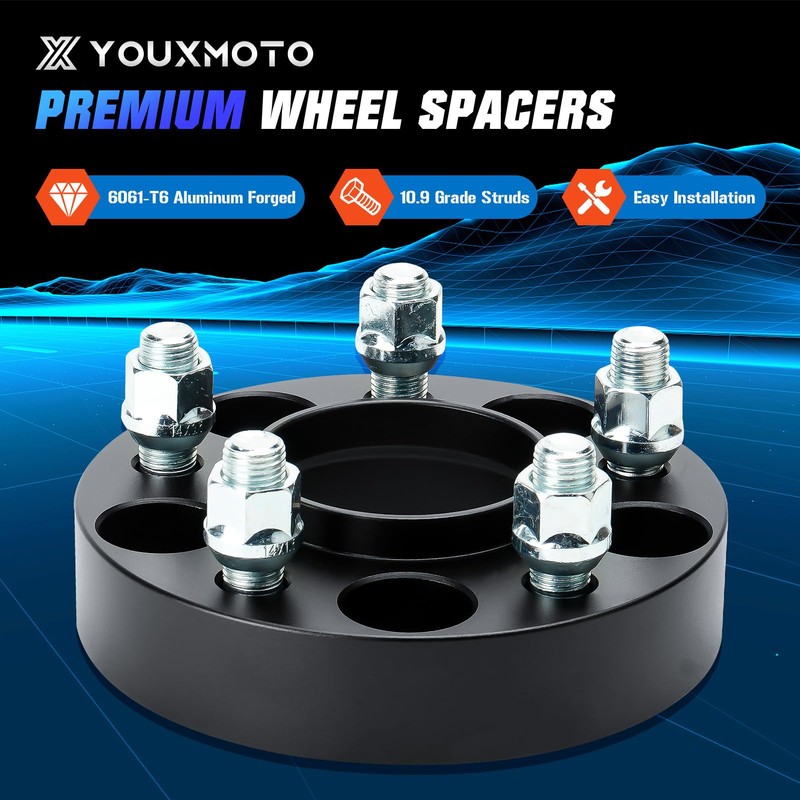 - Specifications: Bolt Pattern: 5X4.5''/5x114.3mm, Thread Pitch: M14x1.5, Thickness: 1'', Centre Bore: 70.5MM, Quantity: 4 PCS Wheel Spacers with Hubcentric.
