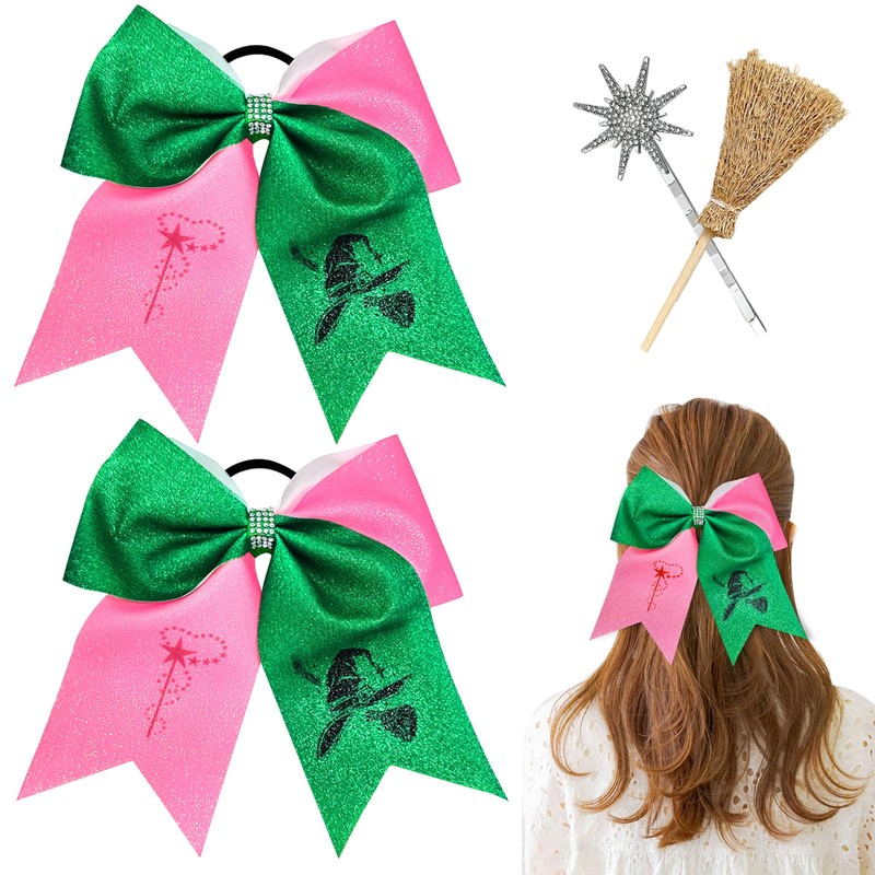 - Pink and Green Bow Hair Accessories: You will receive 2 shiny pink and green elastic bows, sun hair clips, and broom hair clips, cute and eye-catching hair accessories that express your love and support, suitable for all occasions, especially birthday parties, role-playing, and other scenes