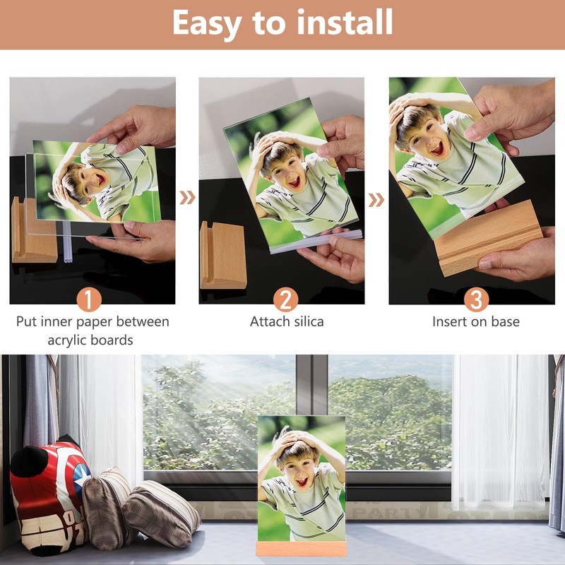 - 【Perfect design】The bottom of the acrylic frame is a wooden base with L-shaped design for better stability. The cutting process of the acrylic frame uses rounded corners and polished edges.