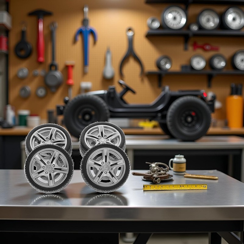 - PACKAGE CONTENTS: Set of 4 black simulation rubber wheels designed for remote-controlled vehicles and toy models