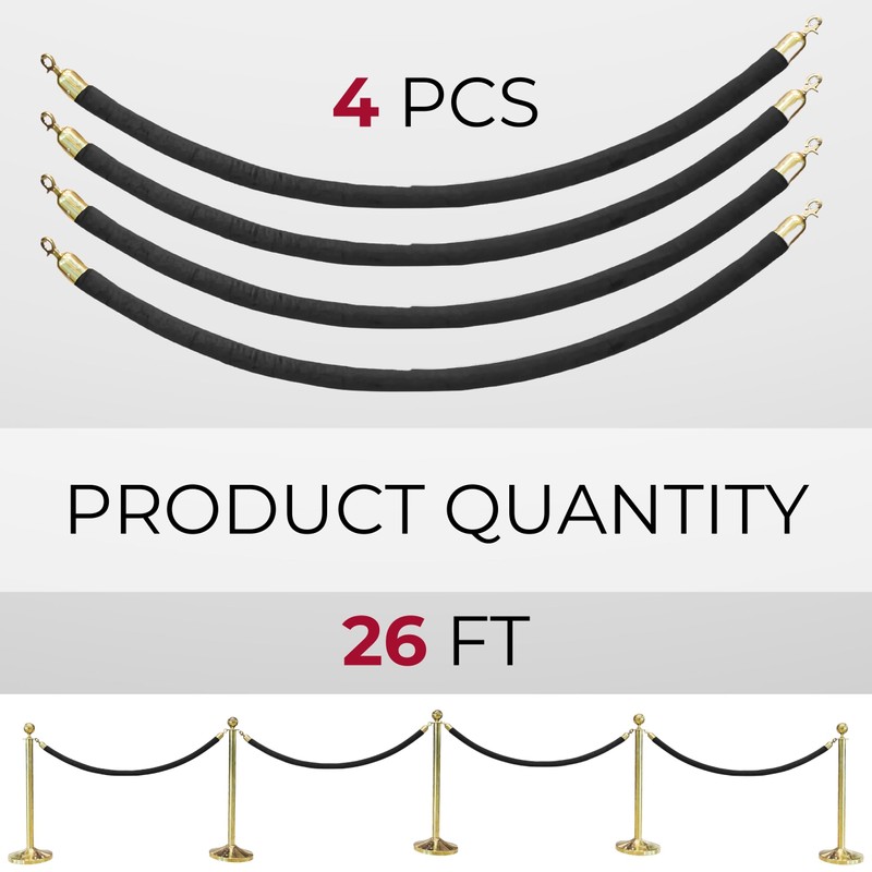 - What You Get: Includes 4pcs black velvet rope, each 6.5FT / 2m long. A variety of velvet ropes and posts, stanchions rope pack, and vip ropes and poles for party will meet all your decorating and crowd control needs at events
