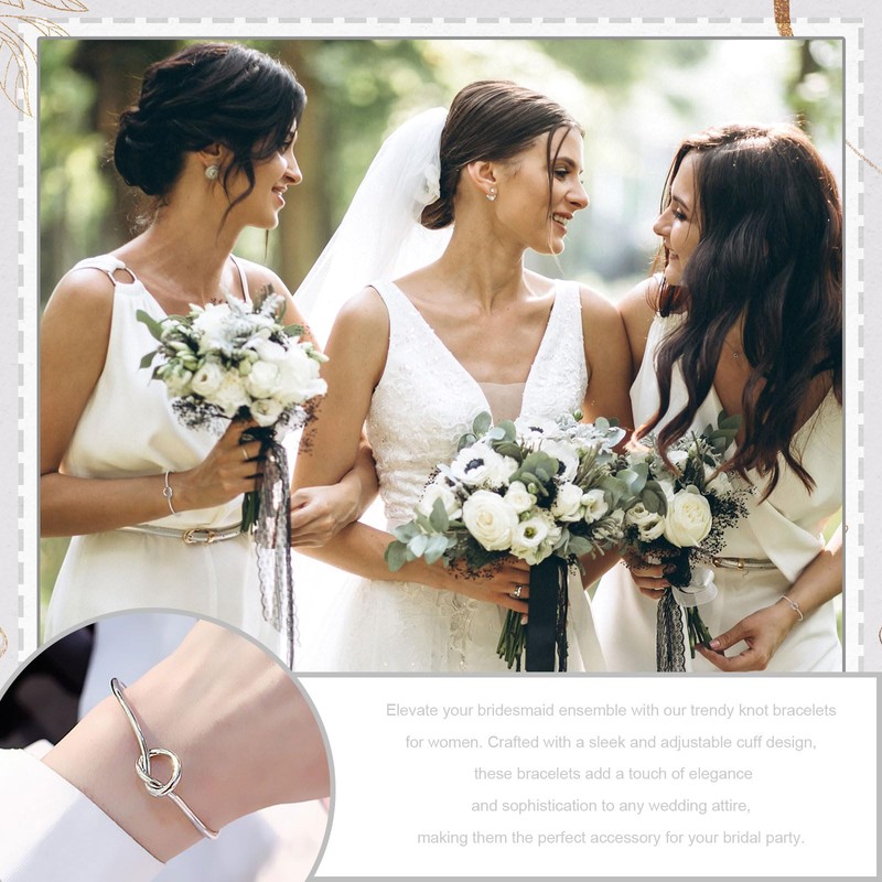 - KNOT BRACELETS for WOMEN: Elevate your bridesmaid ensemble with our trendy knot bracelets for women. Crafted with a sleek and adjustable cuff design, these bracelets add a touch of elegance and sophistication to any wedding attire, making them the perfect accessory for your bridal party.
