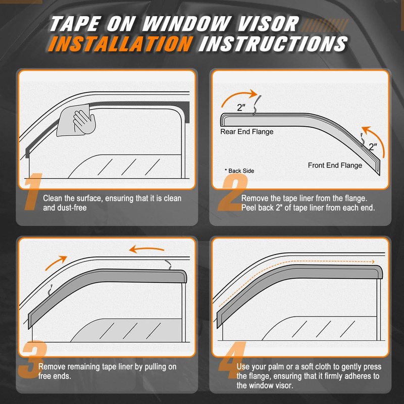 - 【Package Includes】Come with Set of [4] Window Visors. Designed with Precise Engineering Data to Ensure Custom Fit to Your Vehicle, with Sleek Dark Smoke Finish to Match The Window Tint Naturally.