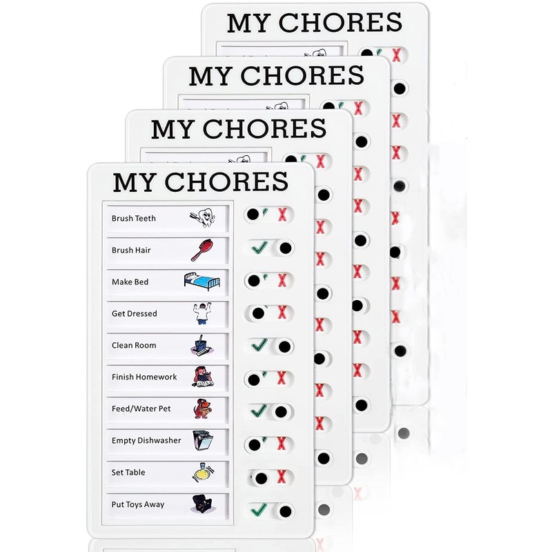 4Pcs Chore Chart Board for Family Kids Portable Memo Plastic Boards Sliding Routine Chart Detachable Message Daily Checklist Planner,Kids Adults Check Items