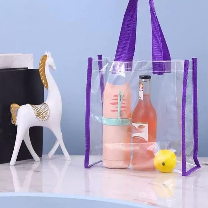 - Packaging:You will receive 4pcs PVC transparent tote beach bag with webbing lace in 25*25*10cm.
