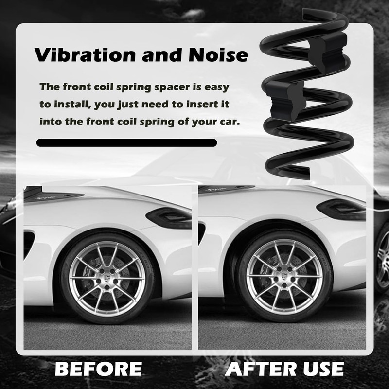 - Shock and Noise Reduction: These coil spring boosters absorbs vibrations transmitted from the road surface, acts as a vibration and noise reduction, diminish the arc of vehicle vibration during driving, bring you a more comfortable driving experience