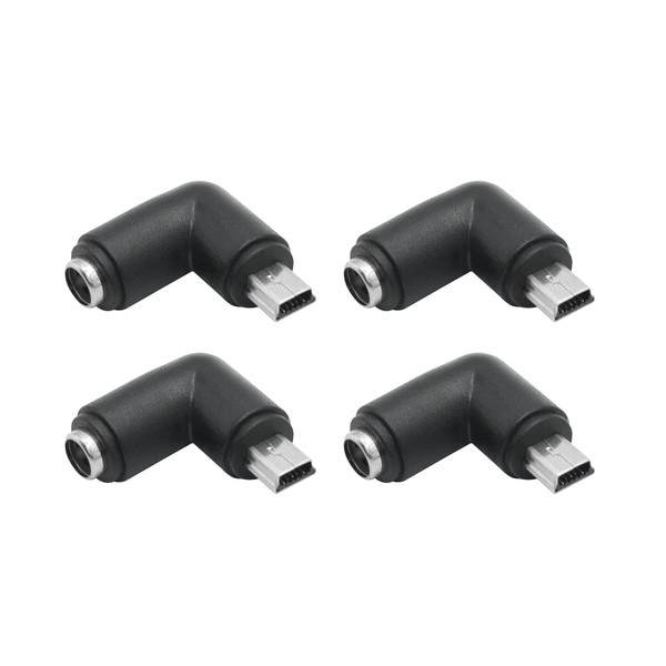 4Pcs DC 5.5mm x 2.1mm to Mini USB Adapter, 90 Degree Right Angle DC 5521 Female to Mini USB Male Plug Convert Connector 5V Power Supply Adapter