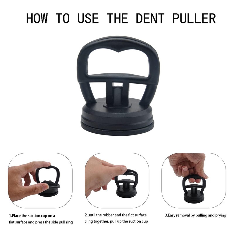 - 【Easy to Use】The dent puller just clean the surface and make it dry.Adjust the handle of suction cup dent puller to the separate state.Place the dent removal kit on the surface and press the car dent repair kit down perpendicular.Retract the suction cup handle to suck the object and you can pull the handle hard.