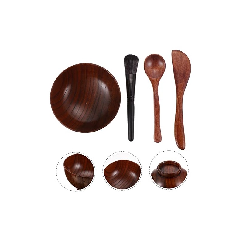 4pcs Diy Wooden Mask Making Kit Drop-resistant Mixing Bowls Gentle Applicator Brush Set for Facial Masks Skincare and Beauty Treatments for Home Use