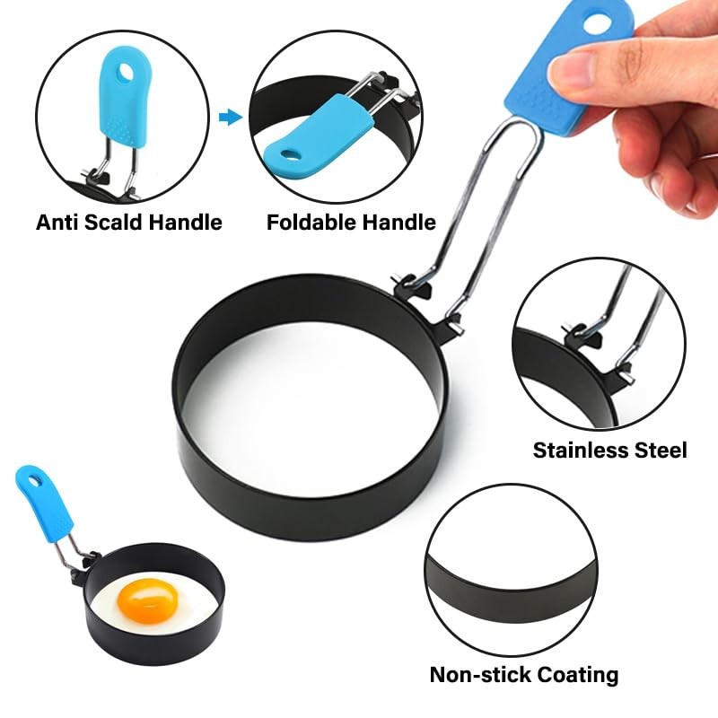 - 【Easy to Release】The non-stick coating on the omelette ring makes the food easy to release and easy to clean. This non-stick ring Keep the food in a consistent shape with less waste and no leaking.