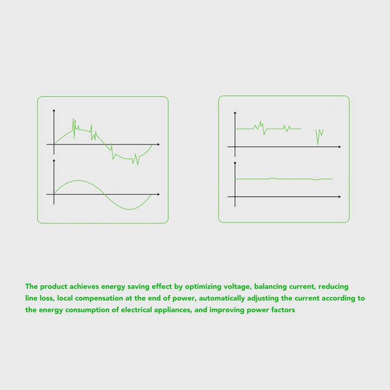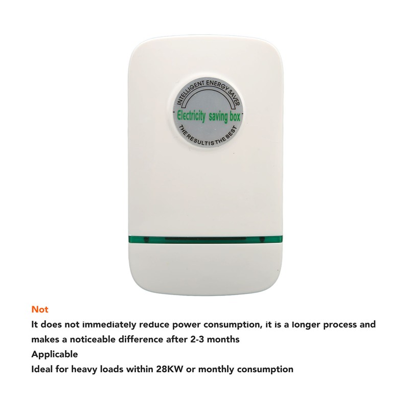 1、Steady State: When the electricity saving box is operating at a rated load, it releases the stored power to the normal state in a more stable way through the capacitor system. 2、Easy to Operate: Simply plug the power saving mode into a power outlet, the power saving box's green light will come on, and then keep the device connected to start working. 3、Widely Applicable: Household energy saver is widely used in air conditioners, washing machines, refrigerators, water pumps, induction cookers, electric kettles, etc. 4、Energy Saving: Household energy saver automatically help you save daily energy, safe and reliable. Ideal for heavy loads within 28KW or monthly consumption. 5、Safety Protection: Household energy saver has voltage regulation, balanced current, surge protection to achieve power saving effect. Effectively prevent electrical appliances from overheating and extend the service life of electrical equipment. 6、Fireproof Shell, Leak Proof Interior: The housing of household energy saver adopts advanced fireproof, explosion proof and leak proof materials, and the internal leak proof protection measures are safe and reliable.