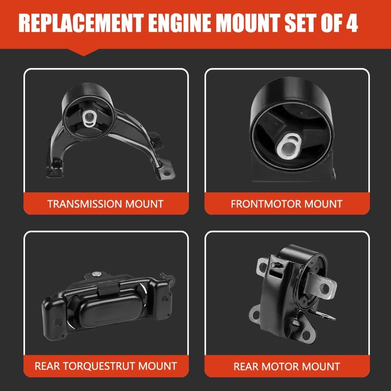 - 【Kit Contents & Mounting Points】 Includes: Front Engine Mount (3217), Rear Engine Mount without heat shield (3256), Hydraulic Right Engine Mount (3186), and Left Transmission Mount (3227). Precise fit for factory mounting points.