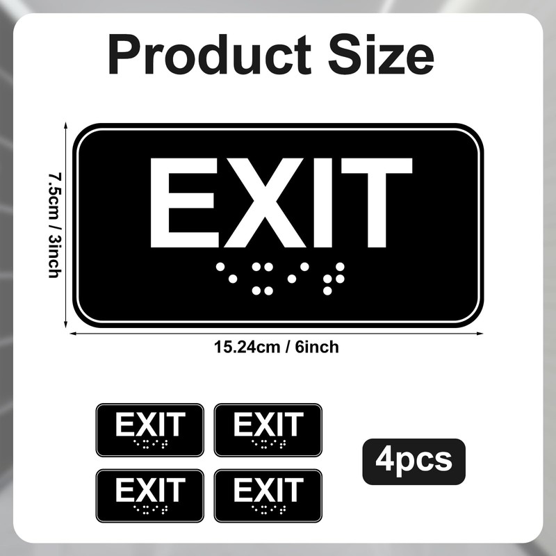 - Content and Size: You will get 4 pieces of rectangle exit signs with ADA-Compliant braille, which size is about 15.24x7.5cm/6x3 inch. It's great for indoor or outdoor places. Sufficient quantity will meet your needs.
