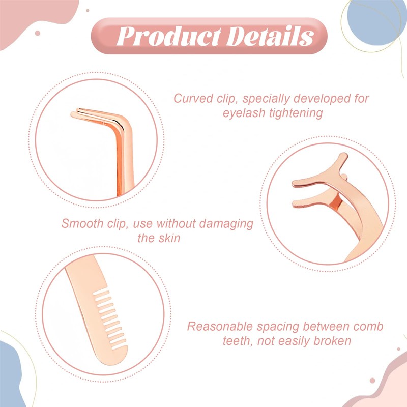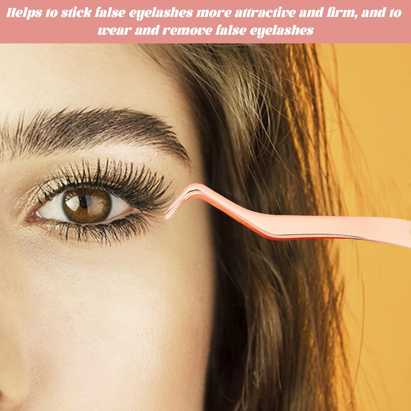 4Pcs Eyelash Tweezers, Eyelash Applicator Tool, Professional Lash Tweezers for Eyelash Extensions, False Eyelash Auxiliary Tool with Comb, Lash Applicator Tool for Makeup False Eyelashes (Rose Gold)