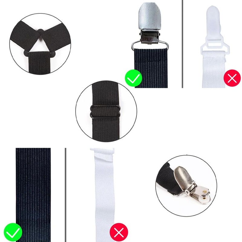- 【4PCS Adjustable Sheet Straps】With the elastic straps, our sheet suspenders allows desired tension and fit all edge of sheet for heavy duty purpose. It is very convenient to adjust them to the length you need.