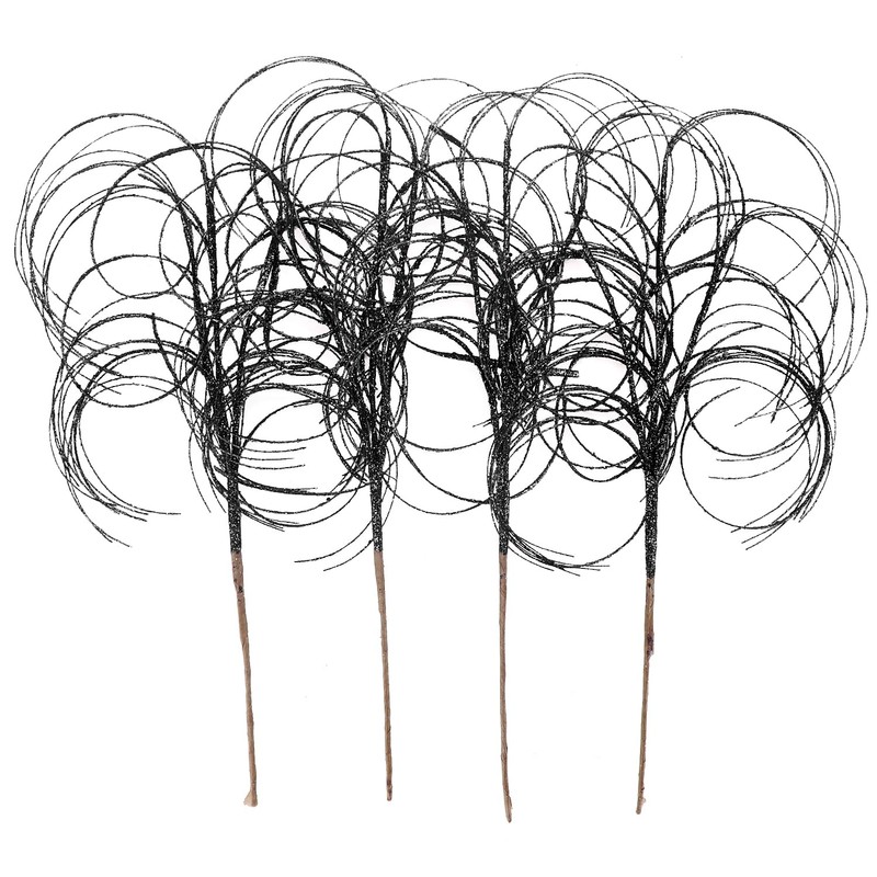 4PCS Glitter Christmas Picks Curly Sprays 20" Artificial Wispy Willow Ting Branches Glittery Twigs Stems Ornaments for Xmas Tree Topper Filler Home Garden Vase DIY Garland Wreath Decor (4, Black)