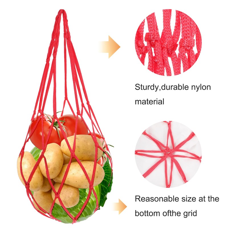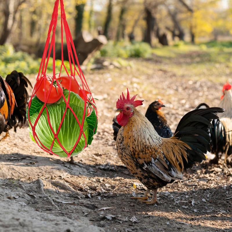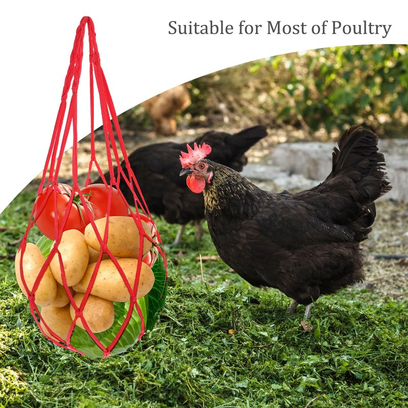 • 【Material and Size】: The vegetable mesh bag is made of durable nylon and is 21.26 inches in length. Large and sturdy enough, it is perfect for hanging all kinds of fruits and vegetables, including cabbage, corn, lettuce, tomatoes, etc., providing delicious meals for your chickens, ducks, and geese.