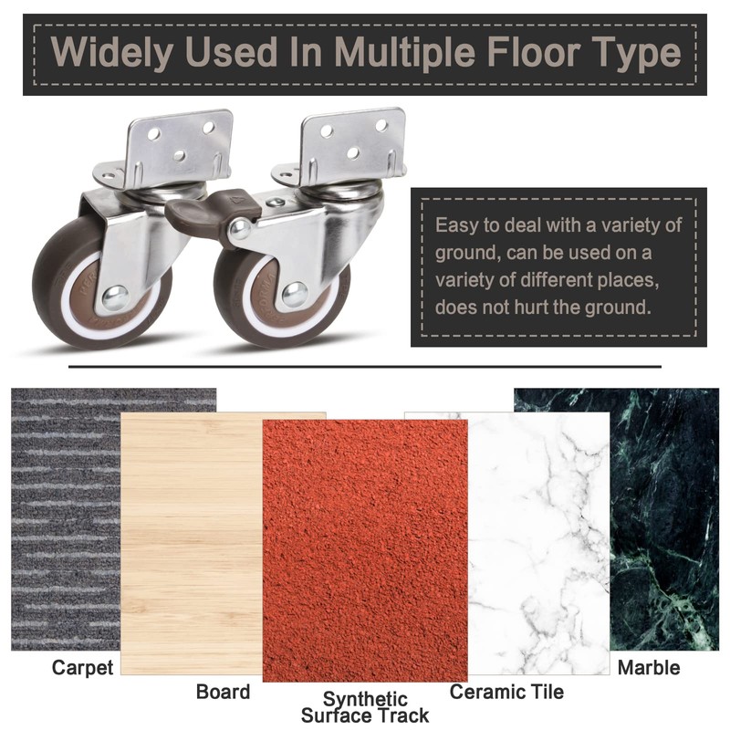 - [Castor Wheels with 2 Brakes] There are 2 types of castors wheel in this set, a wheels without brake and a swivel castors with brake. A combination of castors furniture without brake and brake castors keeps your furniture firmly docked in one place.