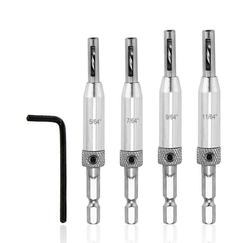 4Pcs Hinge Drill Bit Set 1 Wrench Drill Guide Pilot Hole Drill Guide Door Hole Drilling Self Centering Drill Set Door Hinge Tool Set