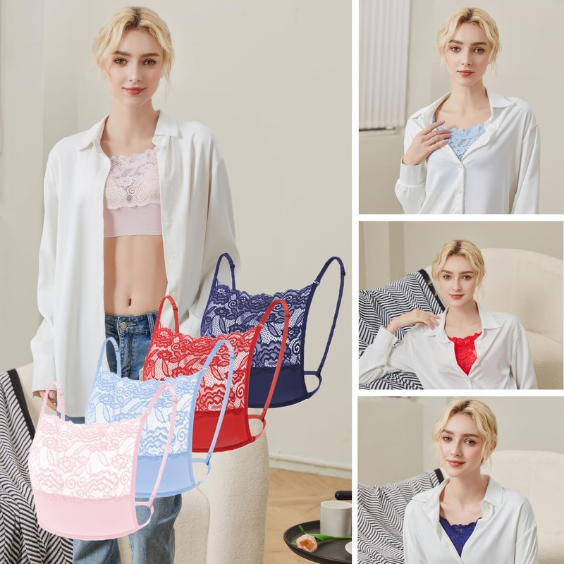 4Pcs Lady Lace Wearable Mock Camisole Bra Insert Overlay Modesty Panel Vest.