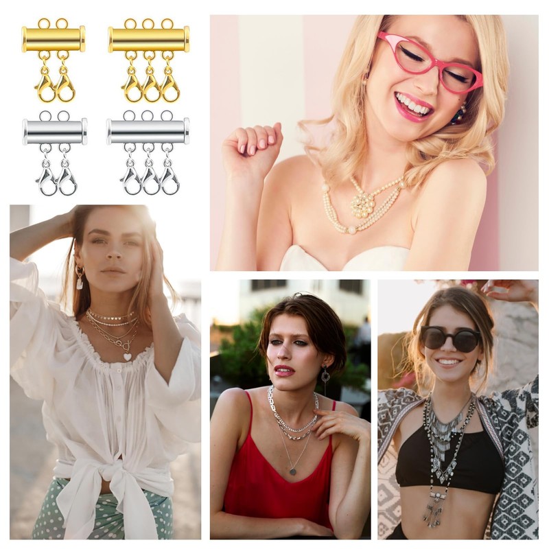 - Elegant Gold and Silver Finishes: Includes 4 lobster clasp accessories – 2 three-row (gold and silver) and 2 two-row (gold and silver). Made from durable alloy, these necklace clasps suit both everyday wear and special occasions.