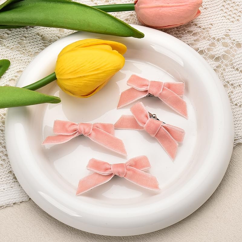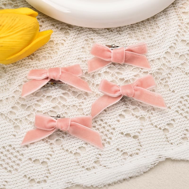 4Pcs Mini Pink Hair Bow Clips for Women Girls Small Hair Bows Clip Barratte for Thin Thick Hair Decorations with Bow Knot Hair Clip for Girls Velvet Bowknot Hair Clip
