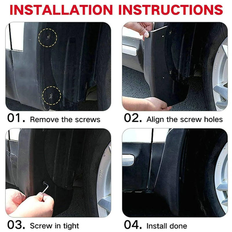 • Easy Installation: The mud flaps come with a simple installation process that can be easily handled by car owners, without the need for special tools or professional assistance.