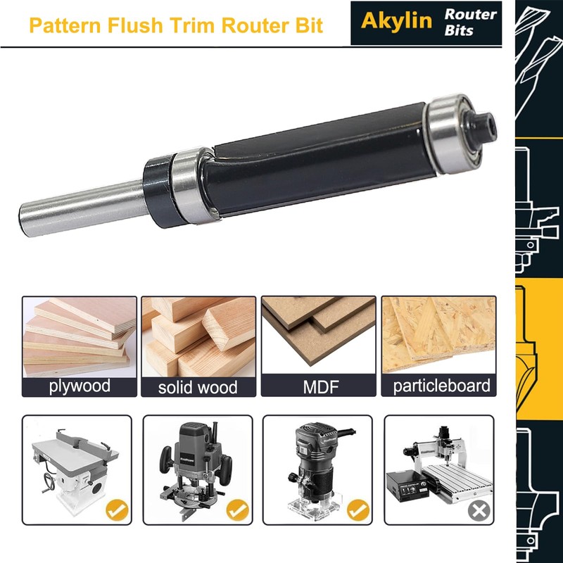 - Use Equipment: This flush cut trim router bit can be used on handle and table-mounted routers. Please check whether the screws are tightened before use.