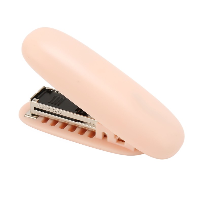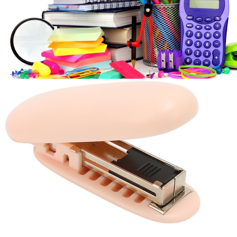 4Pcs Portable Stapler Foldable Storage Effort Saving Lever Structure Compact Rounded Shape Mini Stapler for Office School Pink