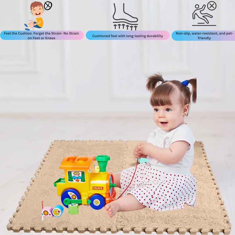 4Pcs Premium Carpet Tiles 12" x 12" – Durable, Non-Slip, Easy-to-Install Flooring Squares for Home & Office – High-Density Low-Pile Carpet (Beige)