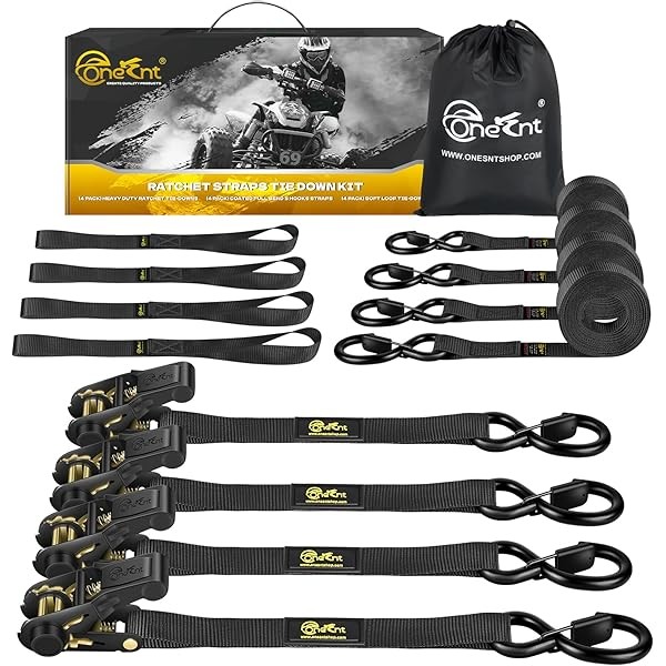 4Pcs Ratchet Strap Tie Down Kit | 1" x 16 FT Heavy Duty Ratchet Straps - 2400lb Break Strength with Safety S Hooks+Soft Loop Tie-Downs for Trucks, Cargo, Motorcycle, Moving, Appliances - Black