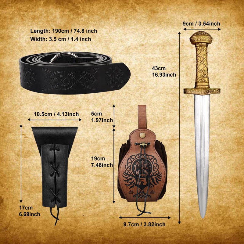 - Renaissance Accessories Include: 1 x fake viking sword, 1 x medieval belt pouch, 1 x medieval viking belt, 1 x black medieval sword frog. A great choice for your overall medieval or renaissance look!
