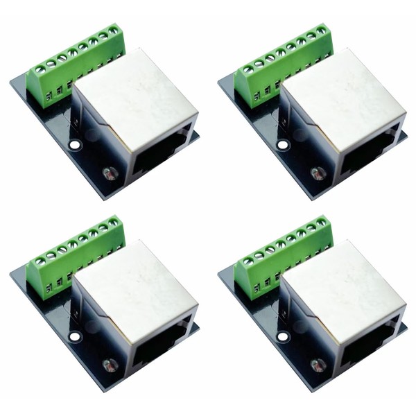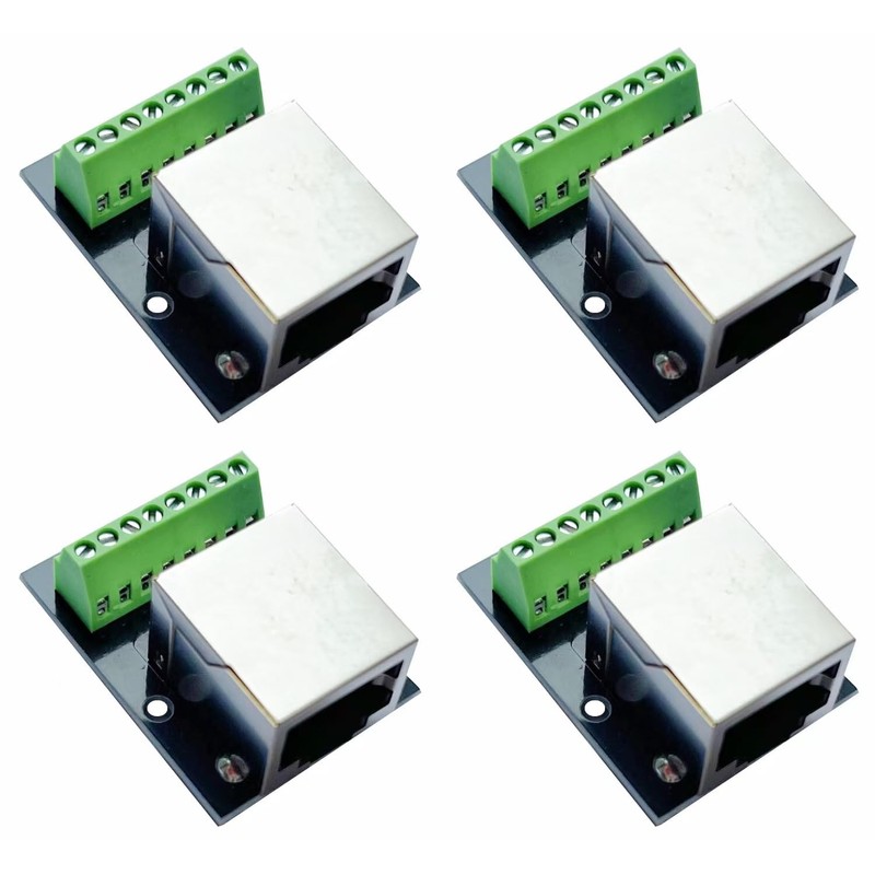 4PCS RJ45 Ethernet single female terminal breakout board offers pre-assembled solution for various networking and electronics projects. The RJ45 adapter board can easily access all contacts of the 8P8C connector, and each connection is led out to a screw terminal for quick and safe termination to the wire.